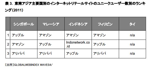 ホーム > 海外ネット関連ニュース> ランキング - 人気リテールサイト トップ3 (東南アジア)