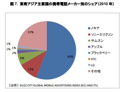 ホーム > 海外ネット関連ニュース> 携帯電話 メーカー別シェア (東南アジア)