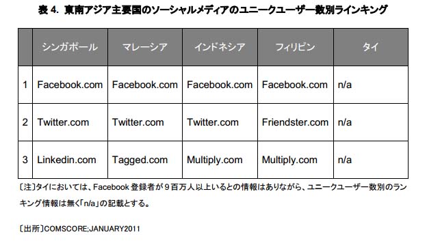 特にタイでは明確なランキングはないが、昨年の反政府デモをきっかけに Facebook 登録者が一気に増加したと言われている。