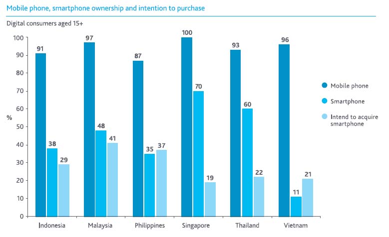ホーム > 海外ネット関連ニュース> 携帯電話、スマートフォン利用状況 (東南アジア)