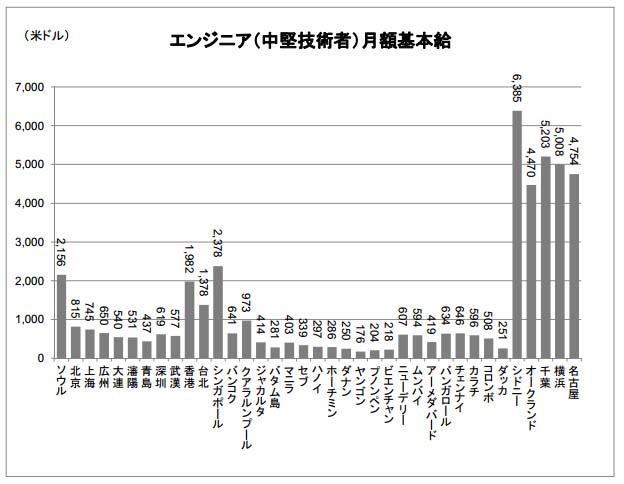 ホーム > 海外ネット関連ニュース> エンジニアの給与比較 (アジア・オセアニア)