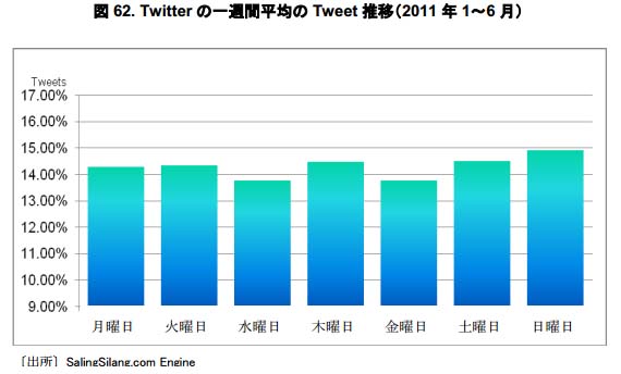 インドネシアのツイート回数は一日平均 129 万ツイートであり、週末になってもツイート回数は収まることなく、平日と同水準にて推移している。
