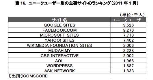 ホーム > 海外ネット関連ニュース> ランキング - 人気サイト トップ10 (マレーシア)