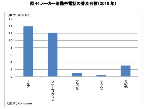 2010 年のモバイルインターネット利用の普及率は 30%とみられており、2015 年までには44%まで伸びる見通しである。