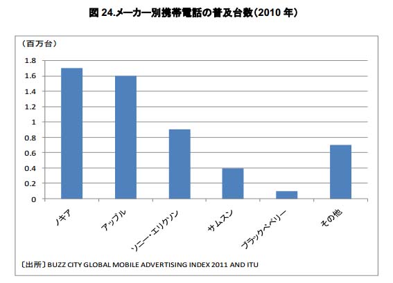 ホーム > 海外ネット関連ニュース> 携帯電話 メーカー別普及台数 (シンガポール)