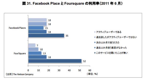 Facebook Place と Foursquare の利用率