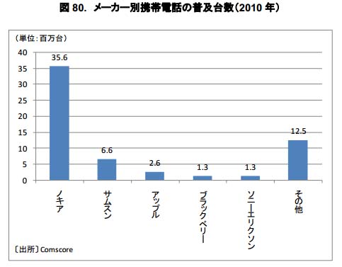 スマートフォンは 120 万台あると推定138されているが、2012 年までには、販売される半数以上の携帯電話はスマートフォンになる見通しである。
