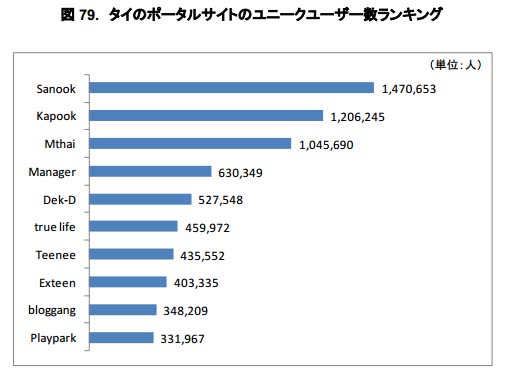 また、Yahoo や MSN などの他国では主要ポータルサイトにも関わらず、タイではあまり利用者が多くないことも(主にメールやメッセンジャー機能として使われている)タイ語対応の問題ではないかと考えられる。