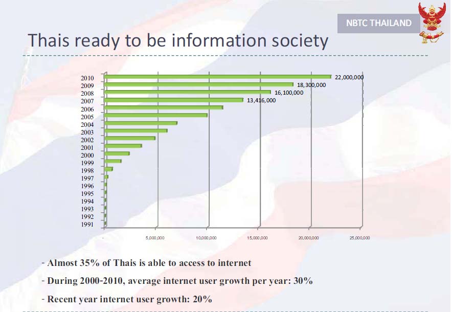 タイ人口のほぼ35%がインターネットにアクセスすることが出来る。