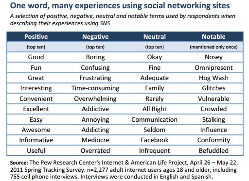 ホーム > 海外ネット関連ニュース> ランキング - SNS利用を一言で言うと・・・ (アメリカ)