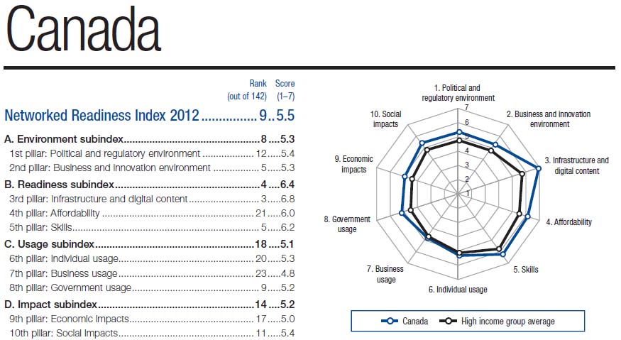 Source : The Global Information Technology Report 2012, Living in a Hyperconnected World. (2012) INSEAD and World Economic Forum